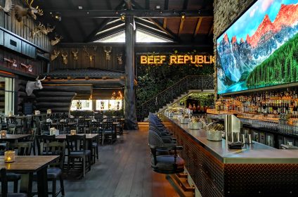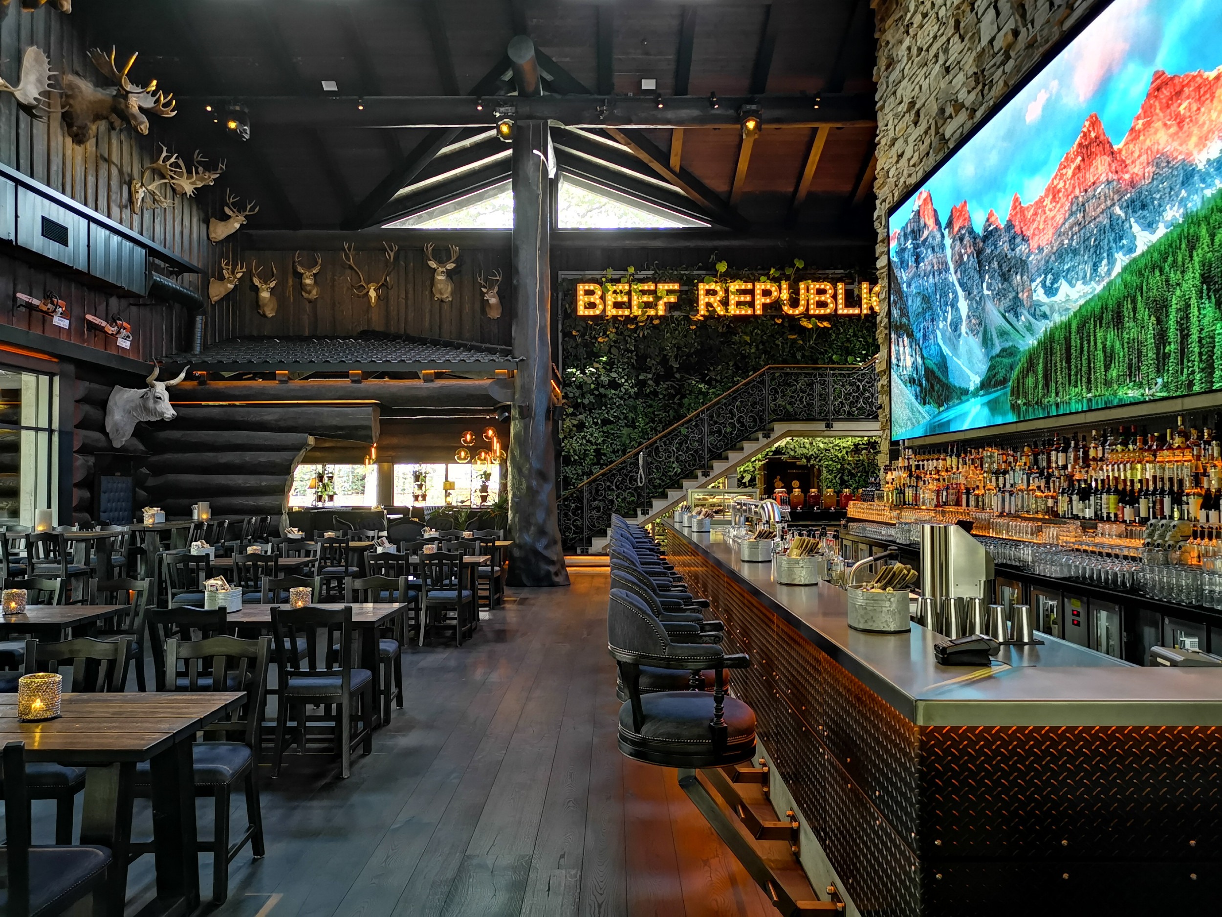 für ein Restaurant zu entwickeln. Ein Blockhaus musste es sein, Bullriding durfte